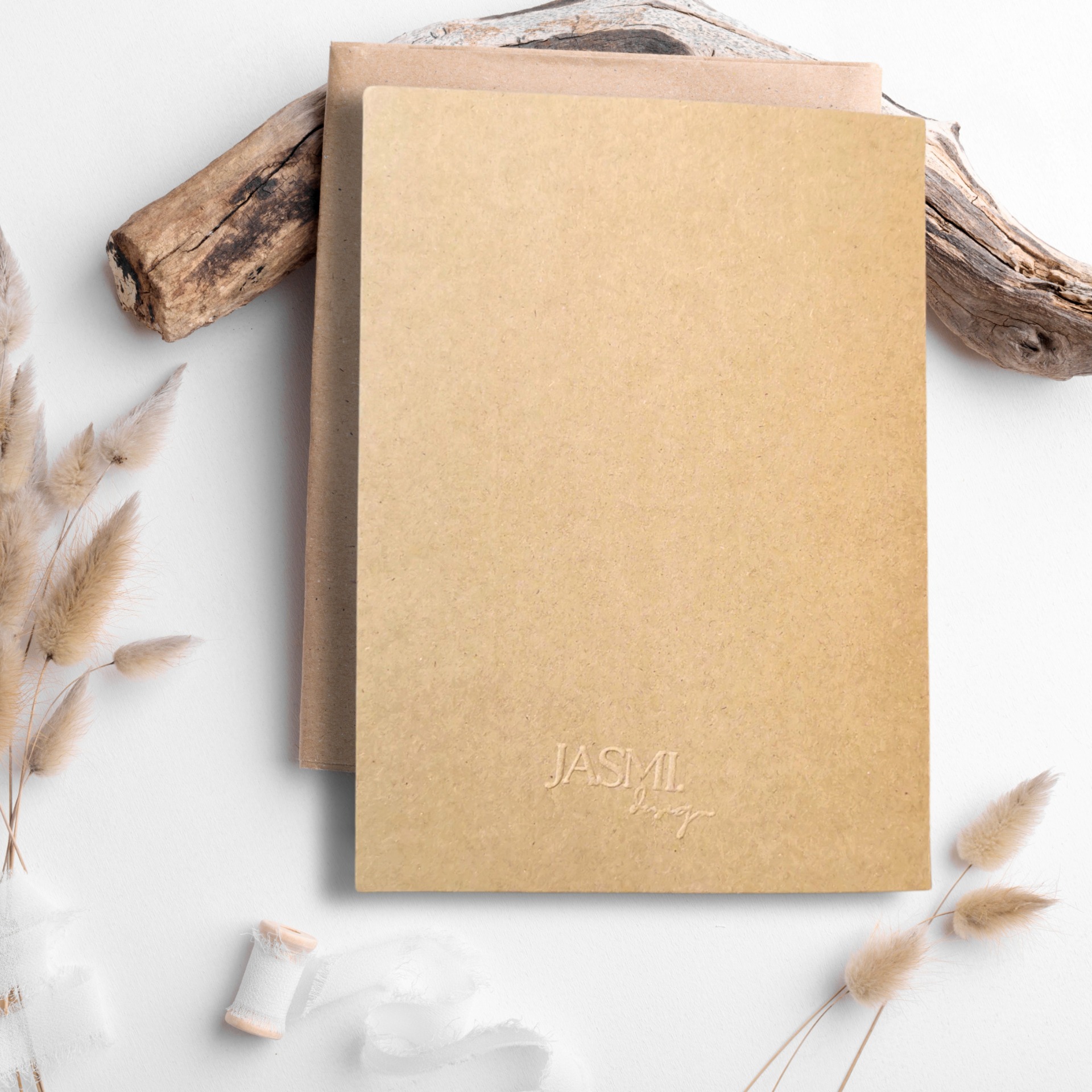 Mukana tuleva ruskea craft-kirjekuori tekee kortista heti valmiin annettavaksi.