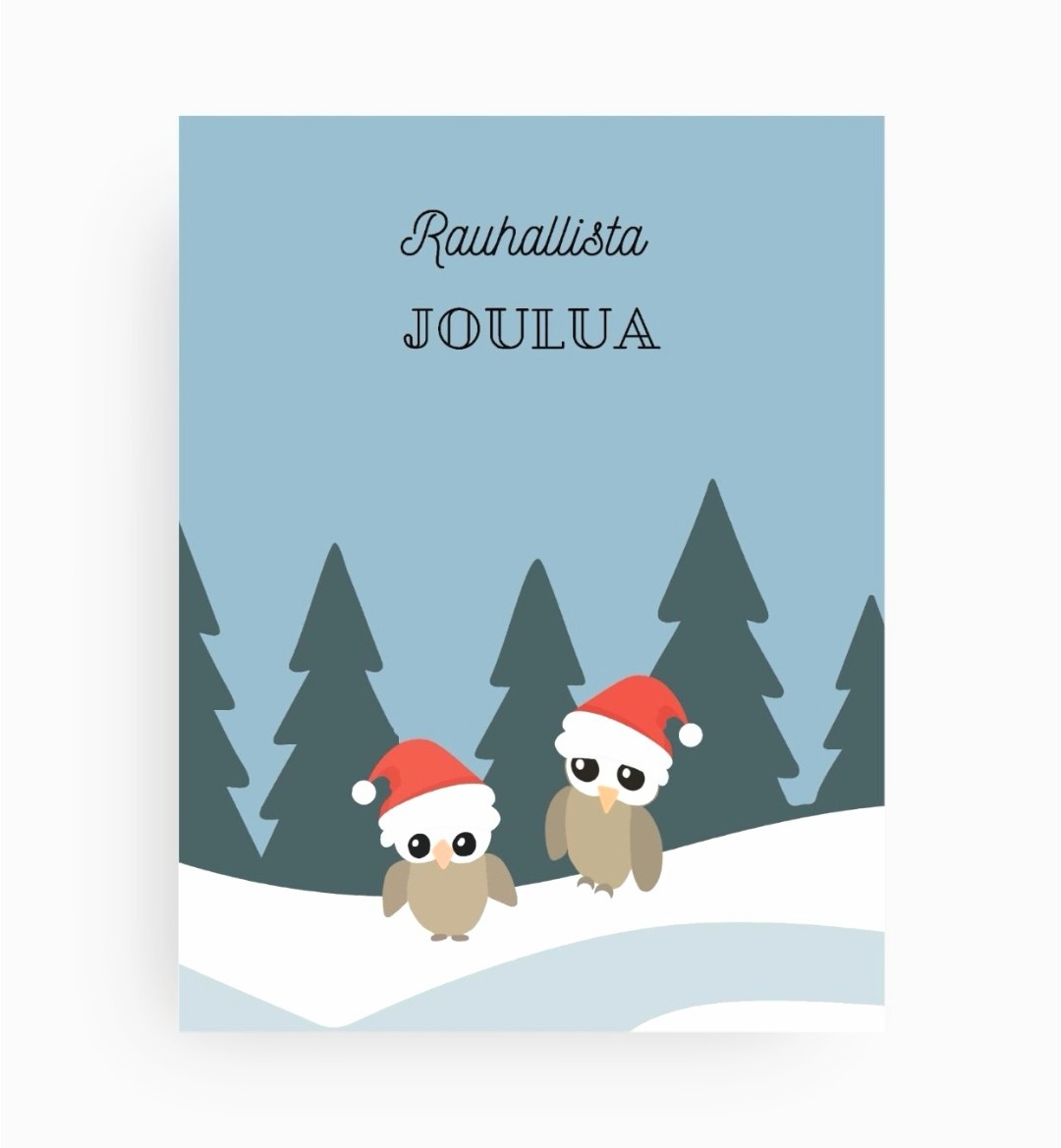 Moderni joulukortti suloisella JASMI.designin pöllökuvituksella.