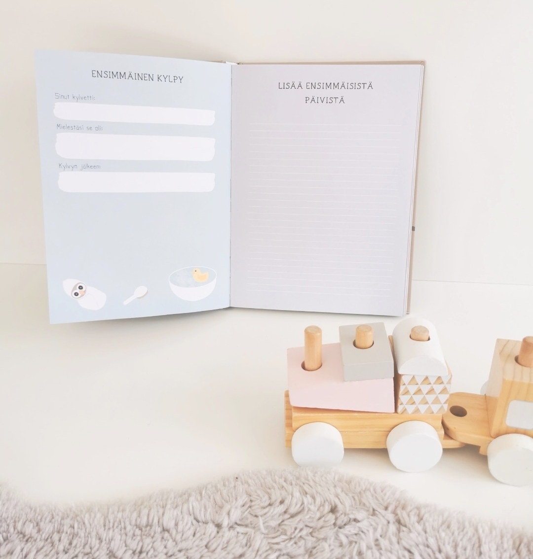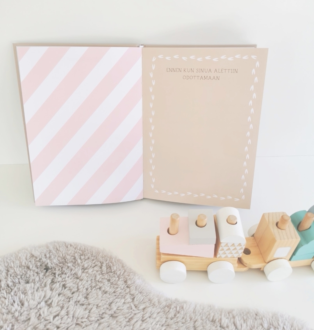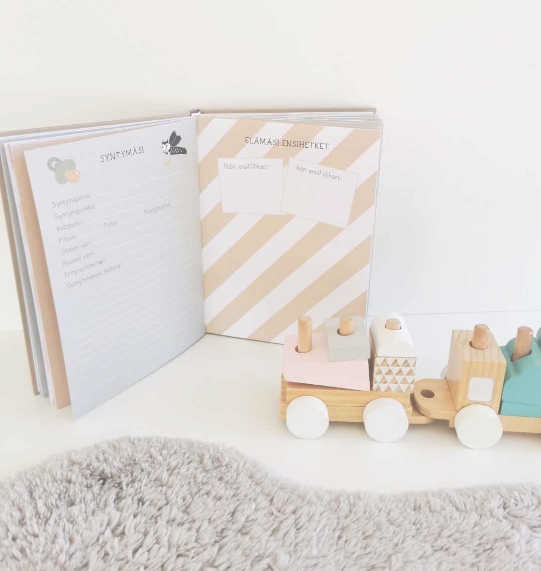 "Aivan ihana vauvakirja, johon saa kouluikään saakka muistelmia. Tämän sain vauvan isältä lahjaksi raskausaikana ja nyt on tilattava kyllä esikoiselle myös, ottaa se käyttöön ja laittaa vanhat sivuun."