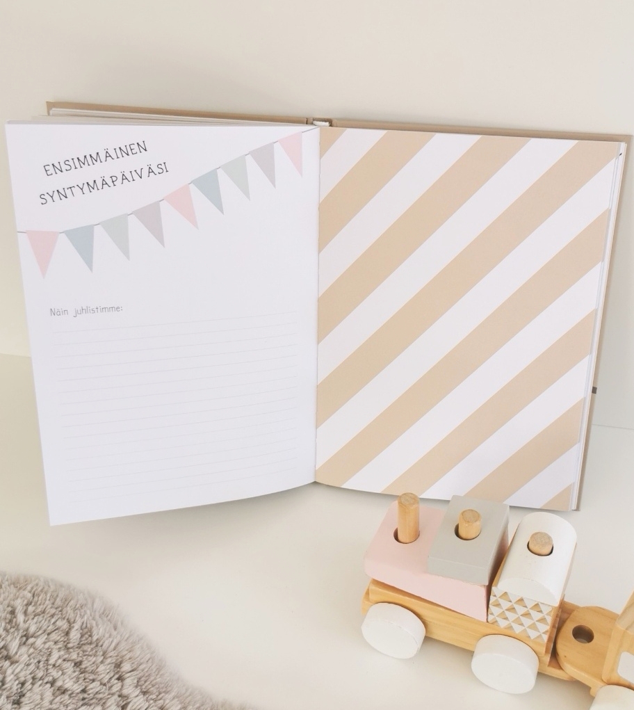"Aivan ihana vauvakirja, kauniit yksityiskohdat ja kattava sisältö. Rakastin täyttää tätä vauvavuonna pieni pala kerrallaan ja ostin myös pienen valokuvatulostimen tätä varten. Oli ihanaa liimailla pieniä kuvia sinne tänne tekstin oheen."