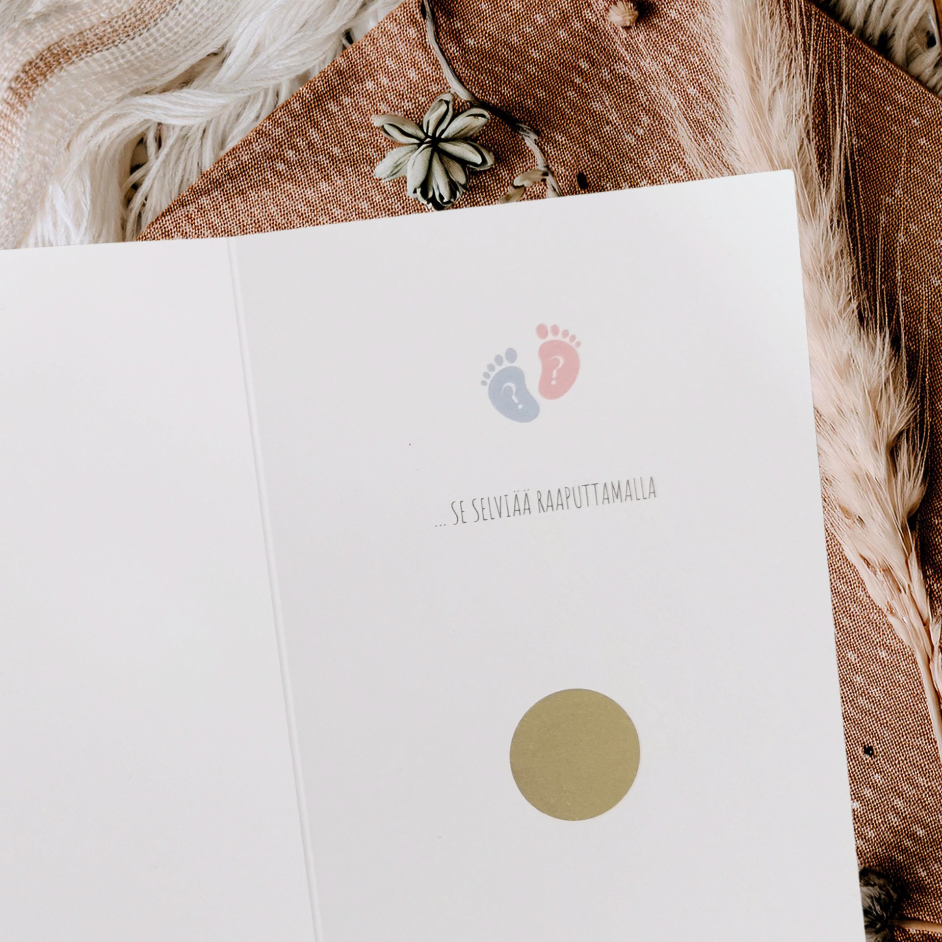Tee vauvan sukupuolen paljastamisesta ikimuistoinen hetki tällä hauskalla ja kauniilla raaputettavalla sukupuolenpaljastuskortilla. Kortin sisällä oleva raaputettava ympyrä kätkee salaisuuden, joka paljastuu vasta raaputtamalla – tyttö vai poika